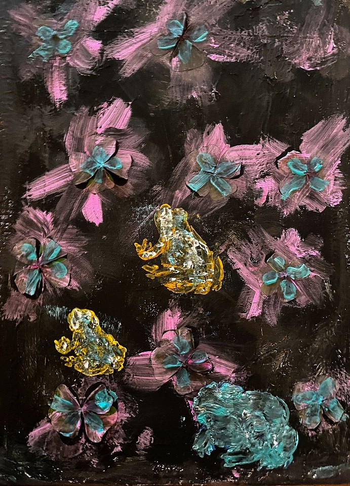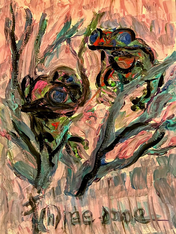 Smaak van bacon in mijn mond, heb ik een van de Ieren gebeten? Mijn gezelschap kwijt, de smaak van bacon wordt de penetrante geur van abattoir. In mijn badkamer en-suite een enorm varken hangende aan de poten. Ogen dicht en weer open het hangt er inderdaad nog steeds! Ga de confrontatie aan en loop er naar toe. Spoel de vieze smaak en stank weg gelijk de beeltenis, koel water, koelwater. Moe van het geren! In het opgewarmde klimaat!
